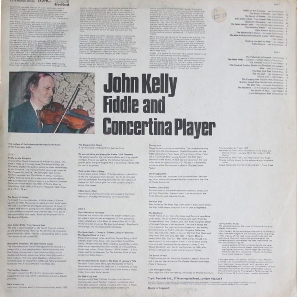 John Kelly Fiddle & Concertina Player album Topic Records released in 1975.